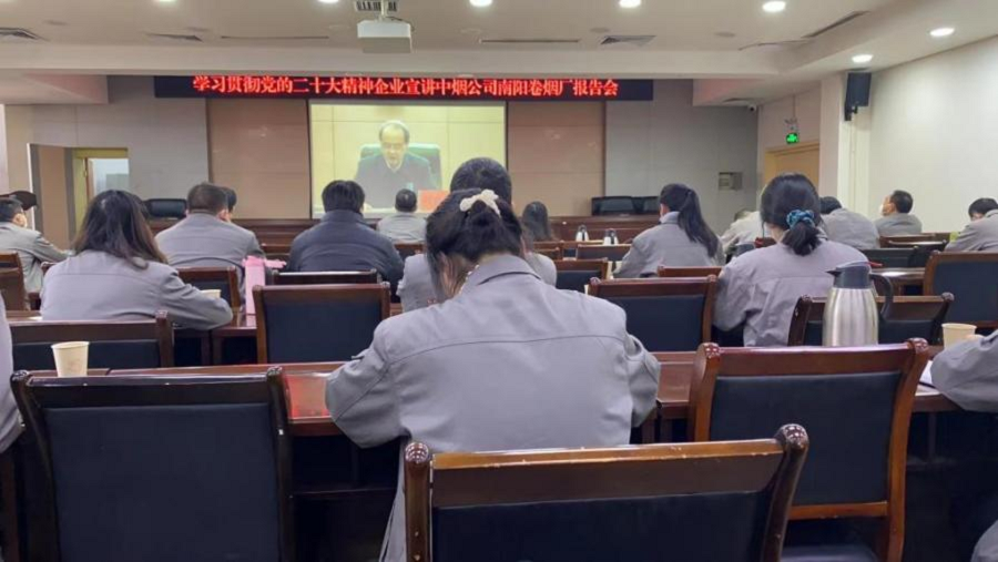 为深入学习贯彻落实党的二十大精神,按照市委、市政府集中宣讲的安排部署,12月26日,市企业宣讲小分队成员,南阳投资集团党委书记、董事长刘九利对河南中烟工业公司南阳卷烟厂、河南天工建设集团有限公司、荣阳实业(南阳)有限公司作二十大精神企业专题辅导报告。