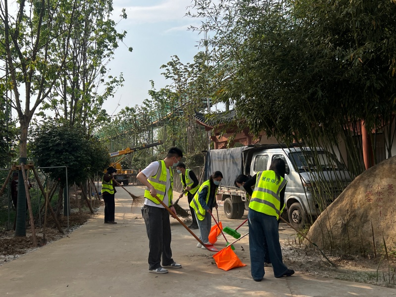 集团集结146名志愿者,以投入环境整治工作。整治范围覆盖园区主次道路、核心景观节点、水系沿岸、休闲活动区及各类易被忽视的卫生死角,实现全域无盲区清扫保洁。景区同步组织20余名工作人员,聚焦河道治理、清淤疏浚,全面清理水域淤泥、漂浮垃圾与沿岸杂物,切实提升水系生态环境。志愿者们手持工具,细致清理垃圾杂物、及时清运枯枝落叶、认真擦拭公共设施、规范梳理环境秩序,用实际行动精雕细琢环境品质,以用心、用情的整治成效,为与会嘉宾营造良好的参观游览氛围。